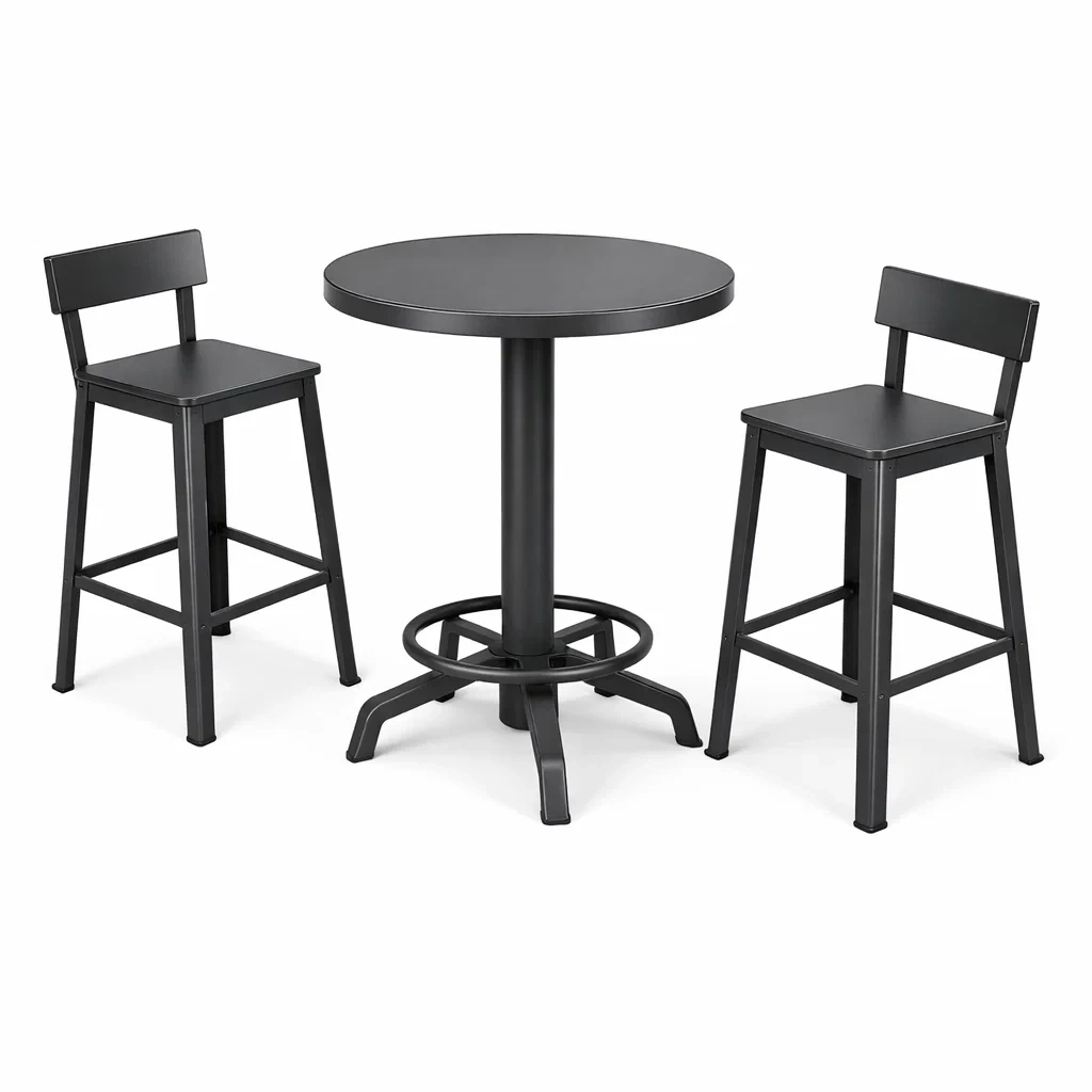 Ensemble bar de table et chaises hautes en métal noir 3 pièces
